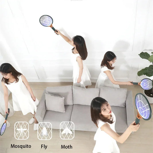 2 In 1 Electric Mosquito Racket USB Rechargeable Fly Zapper Swatter Lamp Electric Shock Bug Zapper Trap Flies Summer Fly Swatter