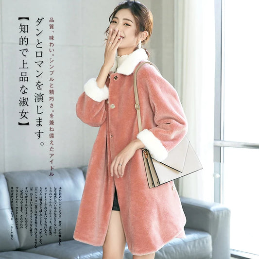 2020 Natural Sheep Shearing Fur Coat With Real Mink Fur Collar Winter Jacket Women Long Warm Overcoat casaco feminino LX2529