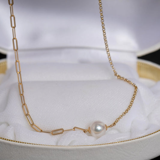 2022 Best Product 18K Gold Unique Design 3A Grade Akoya Pearl Seawater Pearls Necklace Adjustable Link Chain for Women Gift