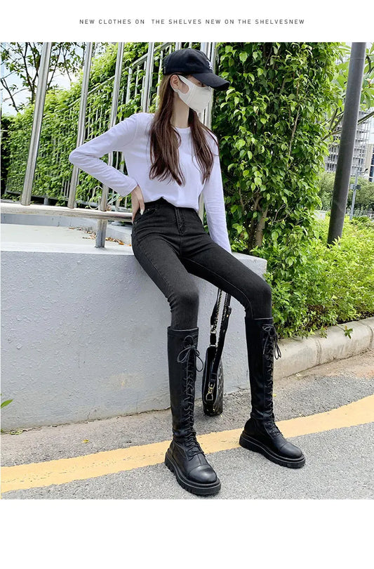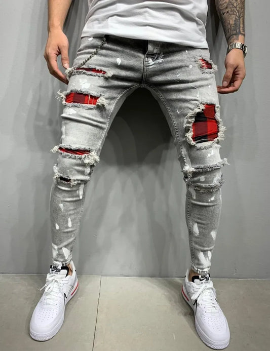2021plus Size Fashion Jeans Men High Quality Straight Patch Beggar Hole Jean Trousers Flocking Warm Men's Pants Male