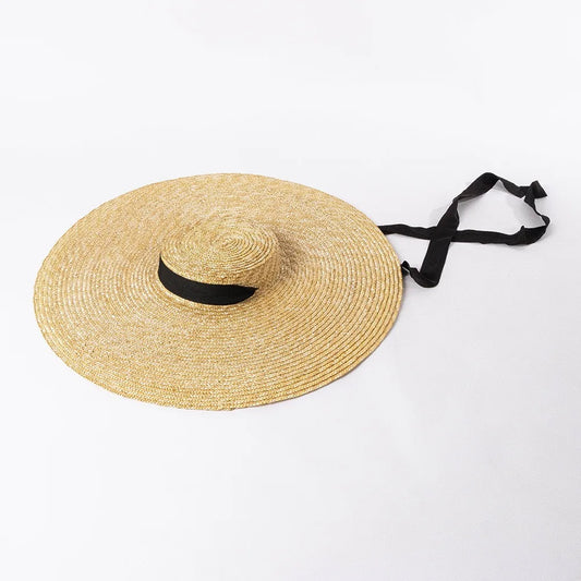 2021 Wheat Flat Large Super Big Size Beach Straw Hats Bow-knot Ribbon Foldable Travel Seaside Sun Hats