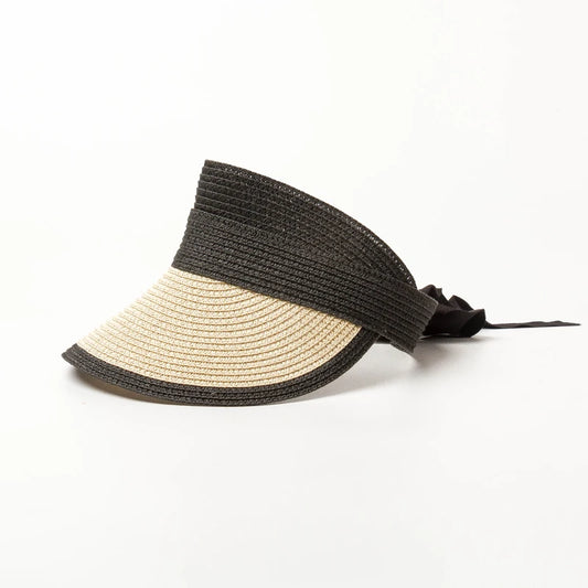 2022 Custom Wheat Summer Uv Protection Sun Visor Straw Beach Hats Striped Face Hiding Sports Travelling Fashion Chapeau