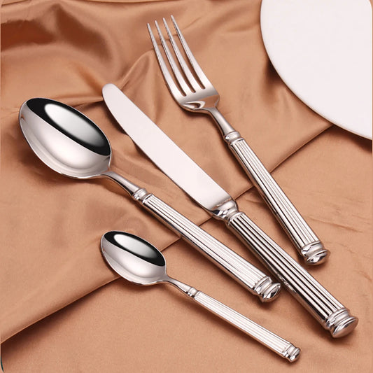Western Silver Cutlery Set Stainless Steel Luxury Elegant Tableware Dinner Knife Fork Spoon Mirror Kitchen Utensils 20Pcs 24Pcs