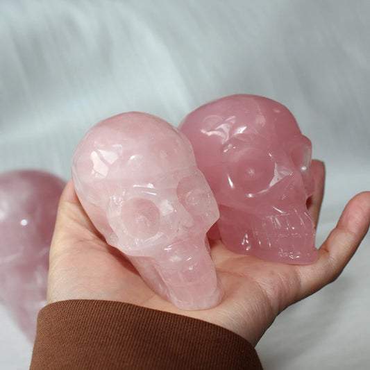 Wholesale 300-1000g natural gemstone rose quartz skulls pink carved crystal statue