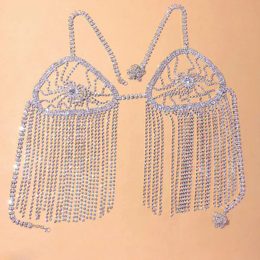 Wholesale Body Chains Lingerie Jewelry Sexy Shiny Rhinestone Bra Thong Set For Women