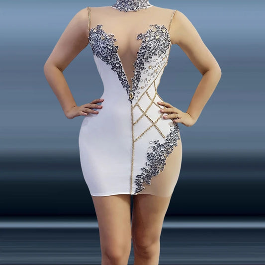 Wholesale Clothing China White Translucent Shiny Sequin Night Club Dresses Sexy Women Hot Mini Club Party Fashion Prom Gown