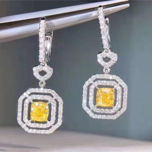Wholesale Elegant Earring Gemstone Jewelry Natural 1.006ct 1.001ct Yellow Diamond Drop Earring 18k Gold