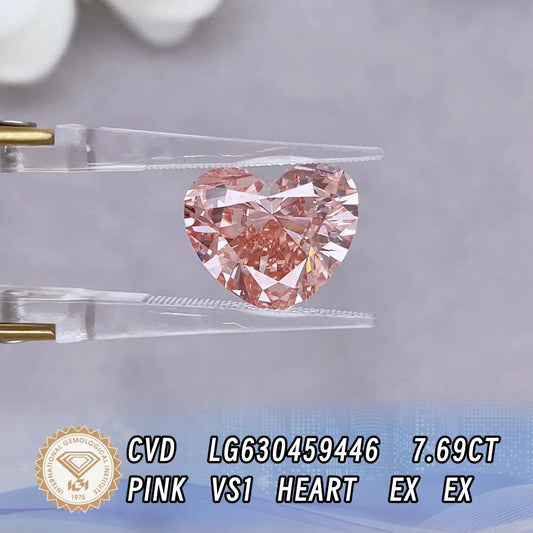 Wholesale fancy pink 7ct heart shape cut lab creat diamond cvd certified lab grown diamond with certificate for jewelry making