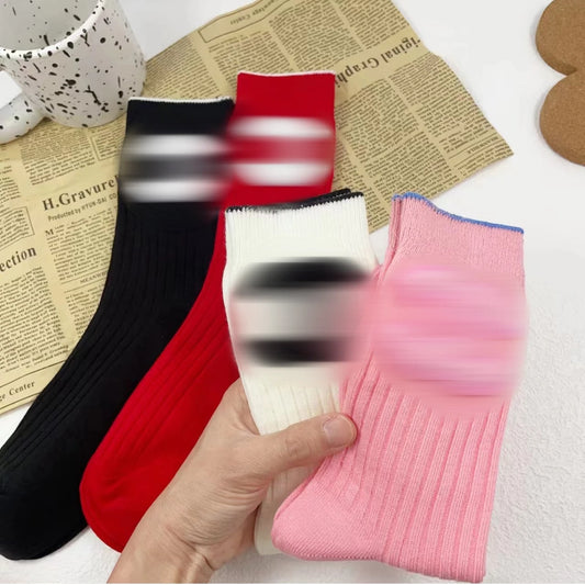 Wholesale designer socks fashion cute pink knitted cotton brand sport black crew socks women