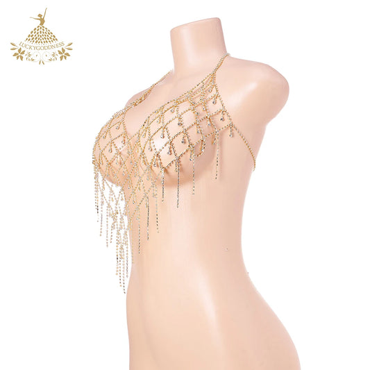 Wholesale Jewelry Bikini Rhinestone Body Mesh Bra and Thong Lingerie Women's Jewelry Decorations DRA-711