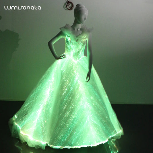 Wholesale Led light up long gown dresses Luminous fiber optic women elegant evening dress