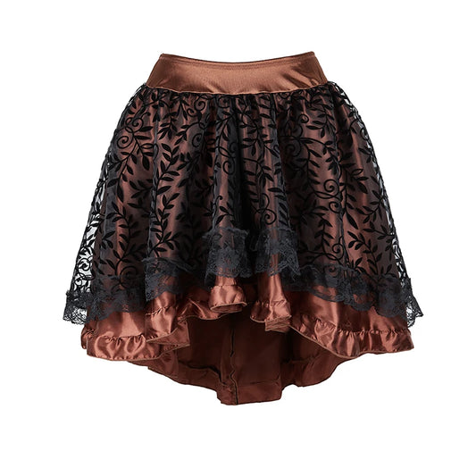 Women Floral Lace Ruffled Skirt Corset Renisants Dresses Costume Gothic Clothes