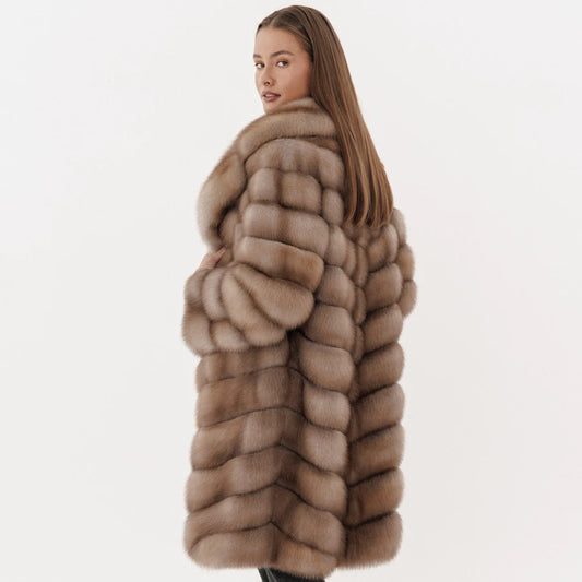 women luxury winter fur coat real mink fur coat with gorgeous sable fur collar poncho style