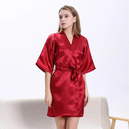 Women Silk Satin Short Night Robe Solid Kimono Robe Fashion Bath Robe Sexy Bathrobe Peignoir Femme Wedding Bride Bridesmaid Robe