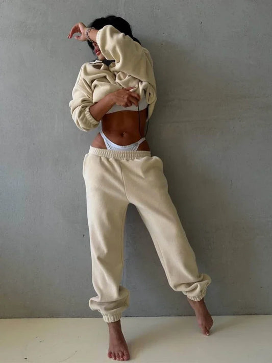 Women Two Piece Sets Turn Down Collar Pullovers Half-Zipper Comfortable Solid Long Sleeved Autumn Winter 2024 Tracksuit Set