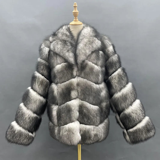 Women Winter Warm Short Coat Fluffy Real Fox Fur Fashion Style Beautiful White Fox Fur Coat