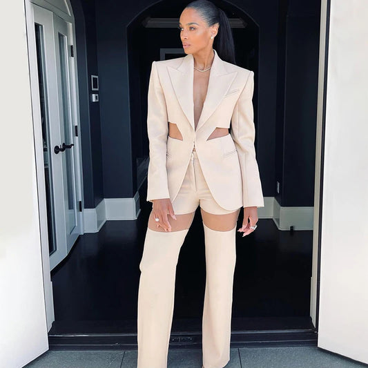 womenwears office women Suit Set sexy v neck hollow out Outerwear clothes Two piece long Pants set casual outfit Lisa Same clothes