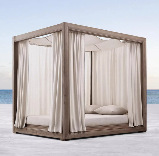 Wooden chaise outdoor teak garden set daybed furniture teak canopy daybed
