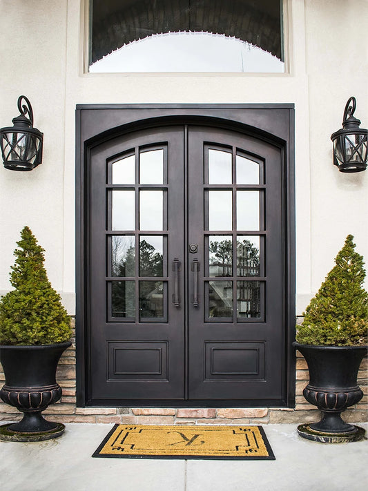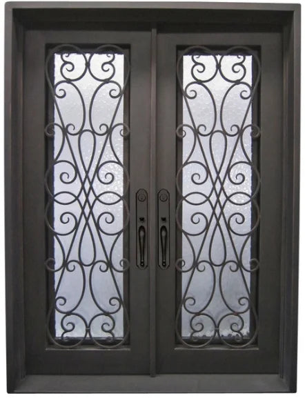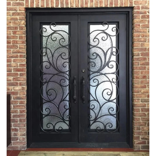 Wrought iron double door main iron glass door designer outside wrought iron door