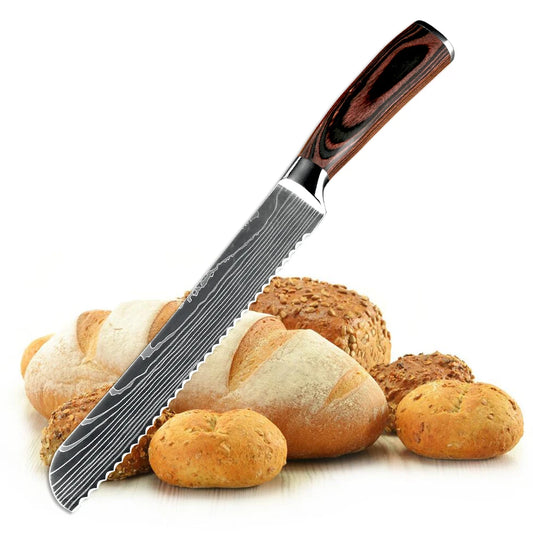 XITUO Kitchen Bread Knife Serrated Design Laser Damascus Stainless Steel Blade 8 inch Chef Knives Bread Cheese Cake Tool