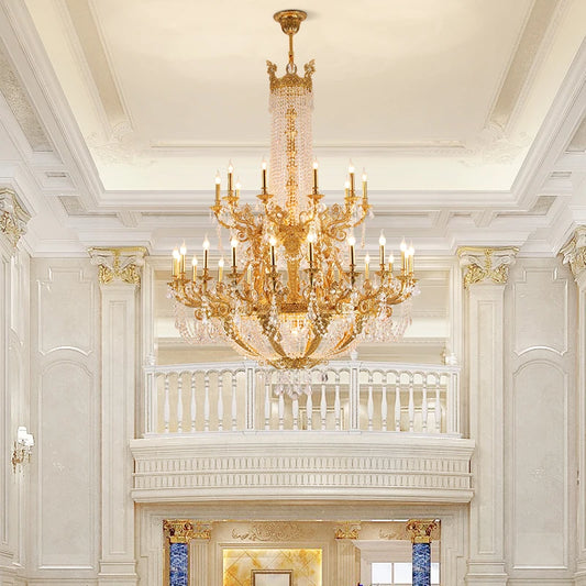 XUANZHAO Crystal Pendant Lamp Brass Light Hanging for Church Boho Huge Chandelier Large Chandeliers for High Ceilings