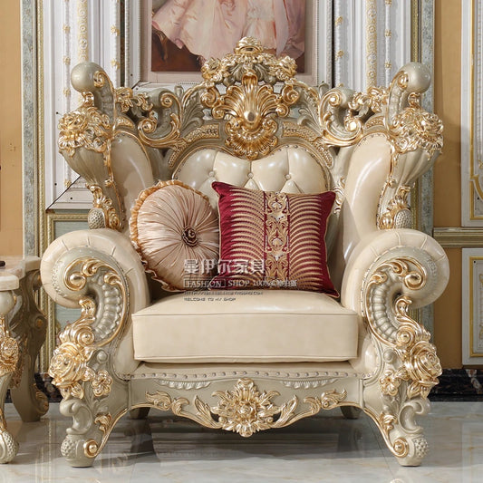 YY Solid-Wood Leather Sofa Luxury Champagne Gold High-End Top Layer Leather Sofa