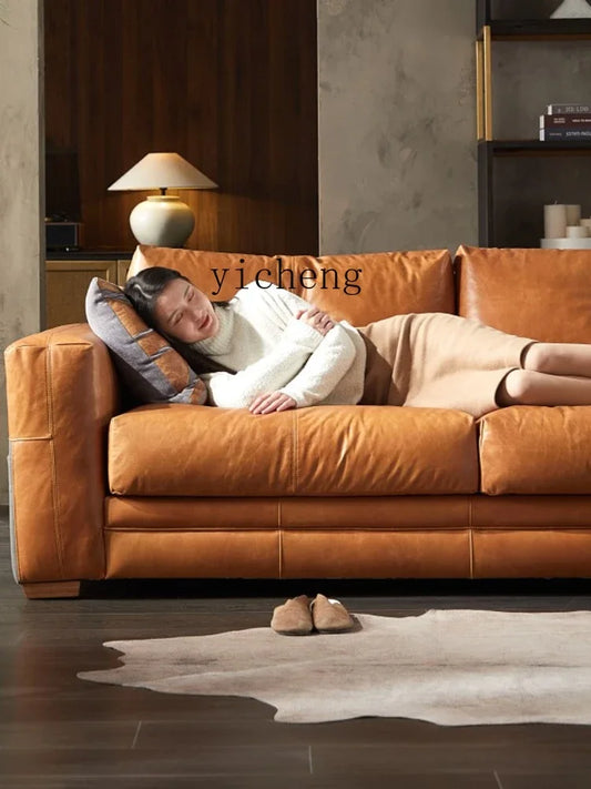 YY Post-Modern Simple Retro Oil Wax Skin Full Leather Sofa Living Room Sofa