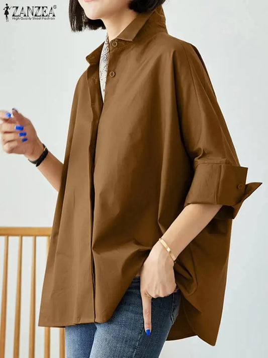 ZANZEA Women Lapel Neck Blouse Fashion OL Work Tops Casual 3/4 Sleeve Holiday Tops Oversize Chemise Female Loose Buttons Blusas