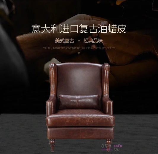 YY Single Leather Small Leather Living Room Nordic First Layer Cowhide Wingback Chair Leather