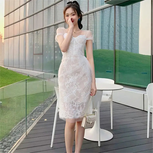 ZYHT 4793 Off Shoulder Casual Elegant Formal Sexy Dinner Women Black Lace Short Bodycon Corset Dresses