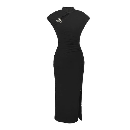 ZYHT 30148 Custom Design Clothes Chinese Style Cut Out Short Sleeve Side Slit Party Women Polyester Casual Long Sexy Dresses
