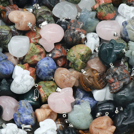 100pcs/pack Random Color 1 Inches Skull Head Pendant Natural Healing Crystals Stone Necklace Halloween Decoration Jewelry