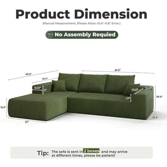 104" Cloud Sectional Couch Comfy Chaise,No Assembly Required L Shape Sofa with Deep Seat,Minimalist Modular Couches Sleeper
