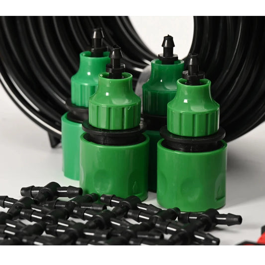 10M/20M Garden Drip Irrigation Automatic Watering System Kit 1/4'' Nozzles for Bonsai Pot Plant Lawn Flower Vegetable Greenhouse