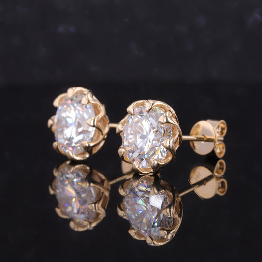 14K yellow gold 2ct D Color VVS1 Round Lab Created Diamond Earrings Men Stud Earrings for Women