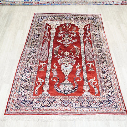 152x244cm Luxurious Living Room Decoration Silk Carpet Persian Handmade Red Best Oriental Rugs (ZW045M)