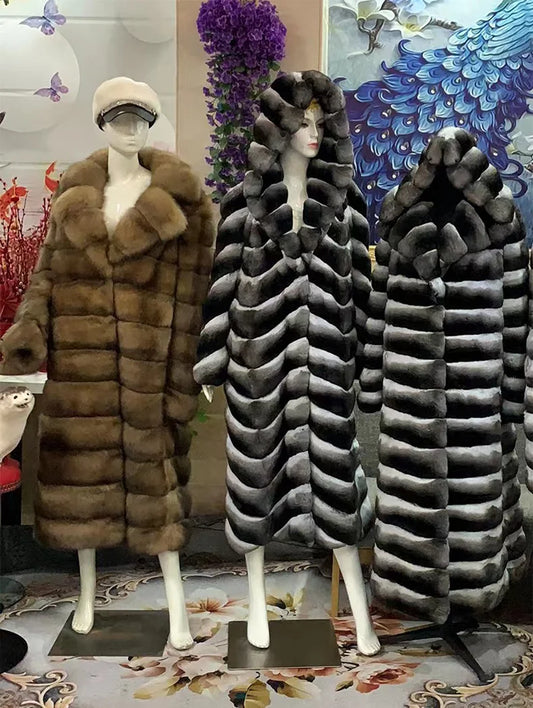 Original Factory Luxury Design Ladies Winter Long Real Chinchilla Clothing Grey Hooded For Women Fur Coat Parka Jacket