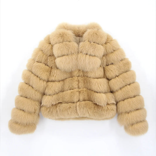 Jancoco Winter Genuine Fur Jacket Luxury Cropped Real Fox Fur Coat Women