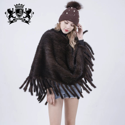Spring fashion cloak women mink knitted poncho real mink fur coat