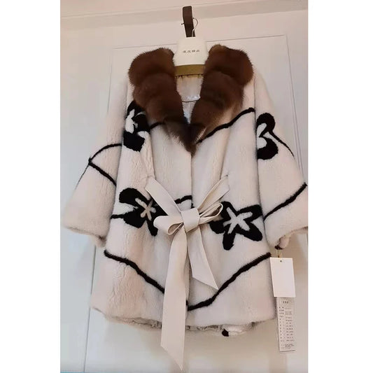 women luxury winter fur coat real mink fur coat with gorgeous sable fur collar poncho style