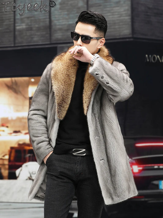 Tcyeek High-end Winter Whole Mink Fur Jackets Fashion Mid-length Mens Real Fur Coats Warm Natural Mink Fur Jacket Men Clothing