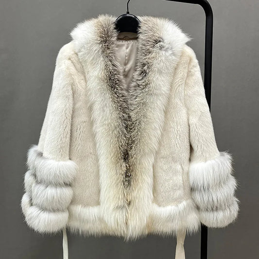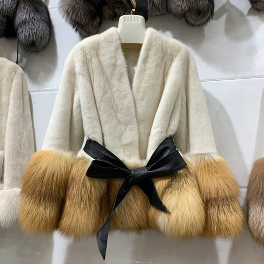 New Arrival Luxury Fur Jacket Crop Real Mink Fur Coat Women with Fox Fur Collar Cuffs
