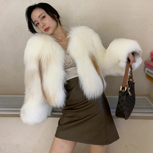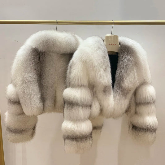 Fashion Trend Winter Warm Fluffy Jacket Real Crop Fox Fur Coat Women