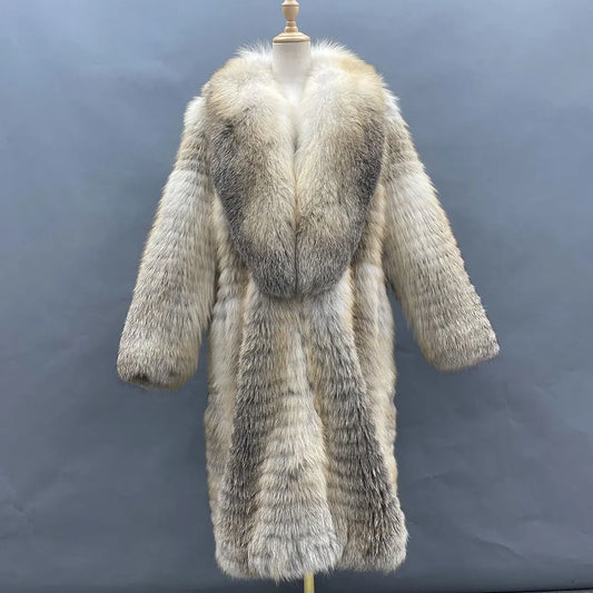 2022 Winter Custom Fluffy Real Fur Coats Sustainable Genuine Fox Fur Luxury Coat for Women