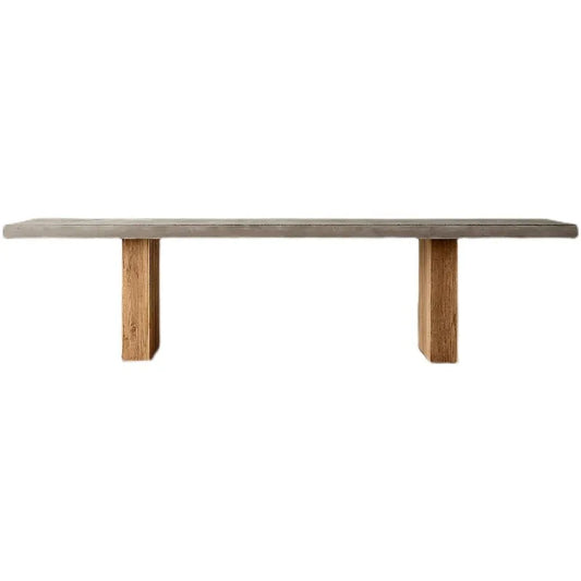 Vintage American style living room furniture with rectangular concrete and teak console table