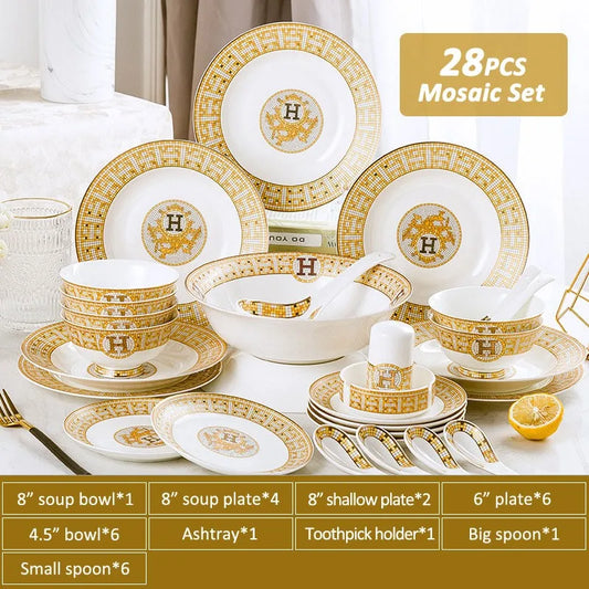 Best Sell Jingdezhen 60 pcs Western Style Golden Mosaic Bone China Tableware Set