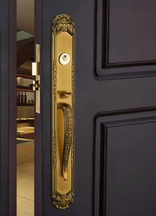 Antique Brass European 260mm Brass Panel Bedroom Door Lock Indoor Door Handle Silent Magnetic Lock