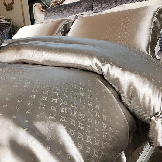 European Luxury Palace Four Seasons 100s Brocade Jacquard Quilt Cover Fitted Sheet All Cotton Four Piece Bedding Set
