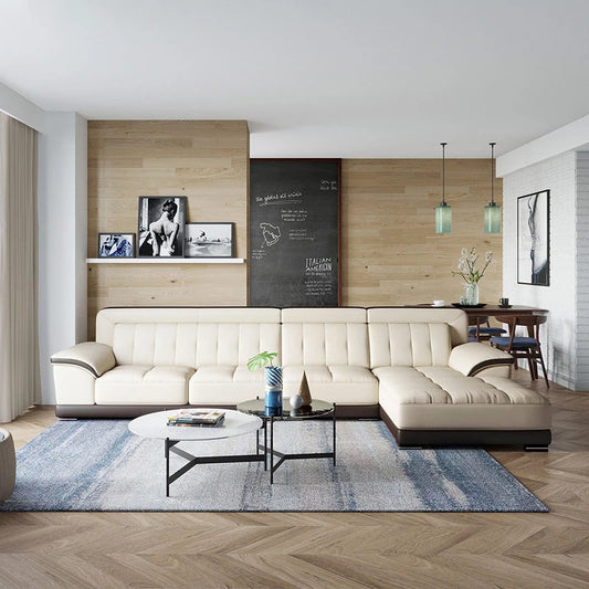 European Italian Luxury Modern Style Large Top Grain Real Corner Sectional Pure Leather Sofa Set