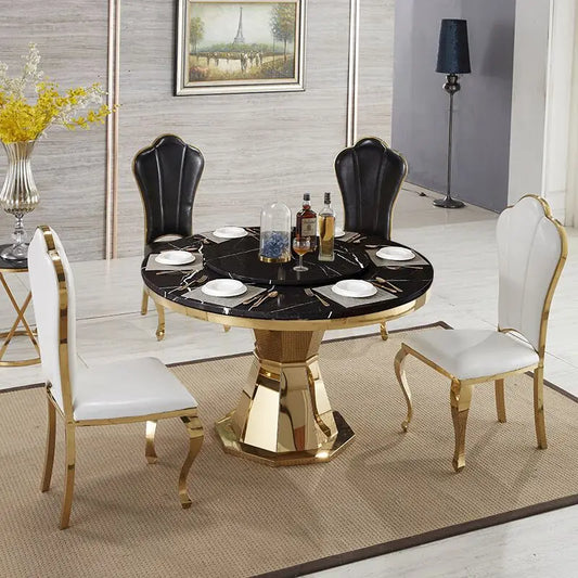 Light luxury Nordic marble dining table chair postmodern simple round table family round gold dining table